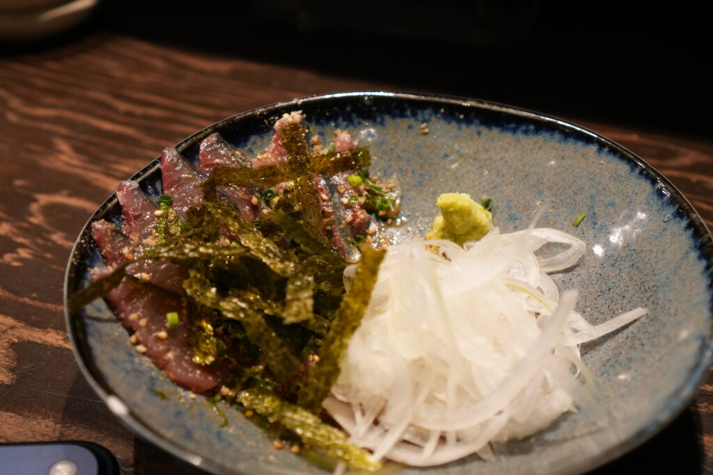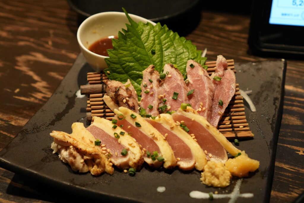 以前、鹿児島に行った時も鳥刺しを食べたんですが、鶏肉を生で食べられるのは良いですよね。これもうまかーって感じでした。埼玉じゃまず見かけないメニューです。