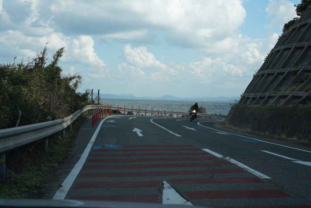 この志賀島というのはバイク乗りにとっては結構有名な場所で、絶景かつコーナーありのアップダウンありのでバイクで流すには最高な場所でした。いやーレンタルバイク借りても良かったかもしれないです。お昼まで時間があったので島を2周しました。レンタカーはカローラだった。